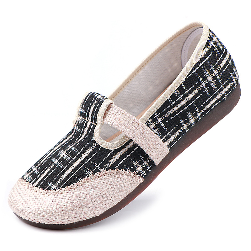 古い北京の布靴の女性は足を踏んで靴の通気性の柔らかい底の2023秋の新型の平の浅い口の女性の靴の卸売りをします。