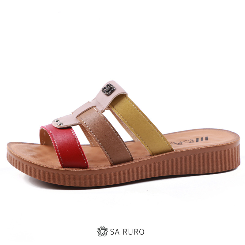 お母さんのサンダルの女性の夏の新型の中高年の柔らかい底の中年の皮のサンダルの女性の靴の外で平底の女性のサンダルを着ます。