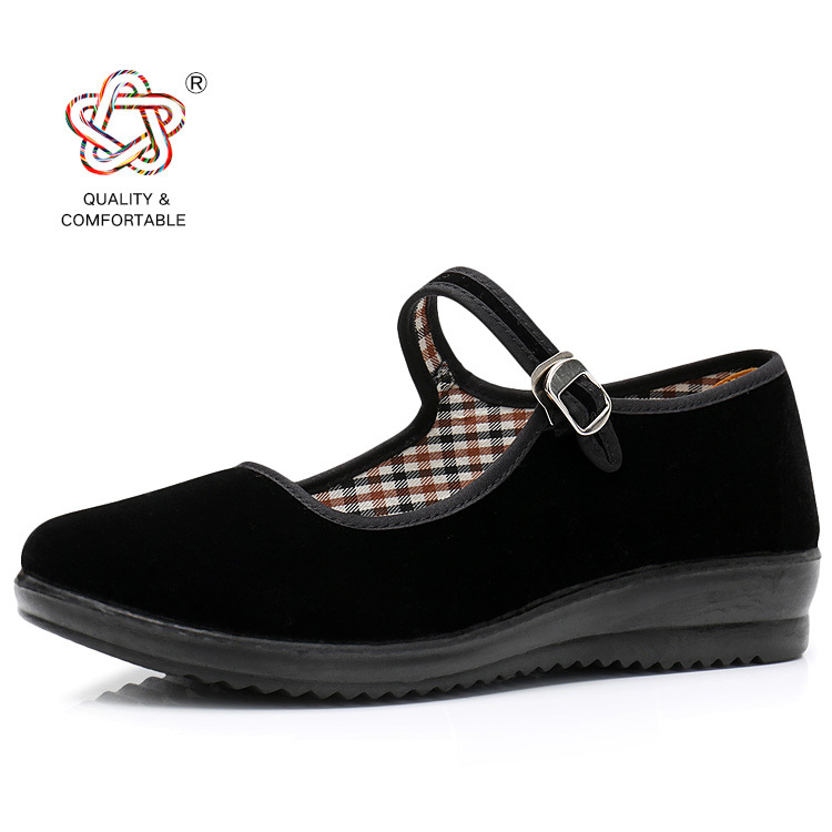 黒い靴付きの女性ホテルの黒い女性の布靴の古い北京の布靴の女性の靴の平毛の世代の平ヒール