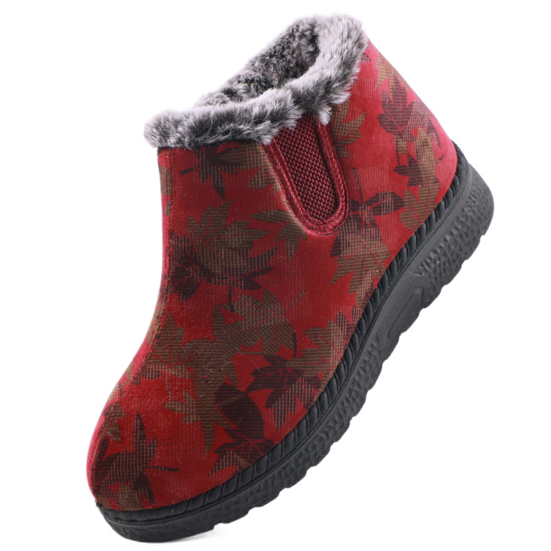 中高年の女性の綿の靴は足をかぶせて保温します。