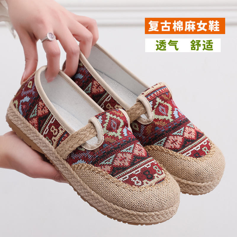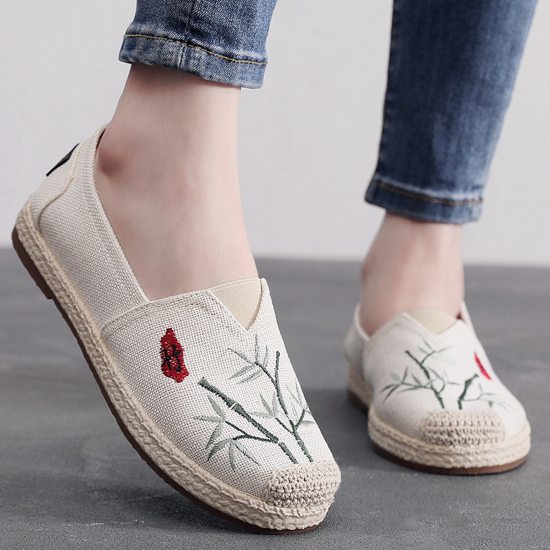 国境を越えた代理店中国風竹古い北京布靴女性のスリッポンシングルシューズ通気性のあるソフトソールの新しい漁師の靴女性のための