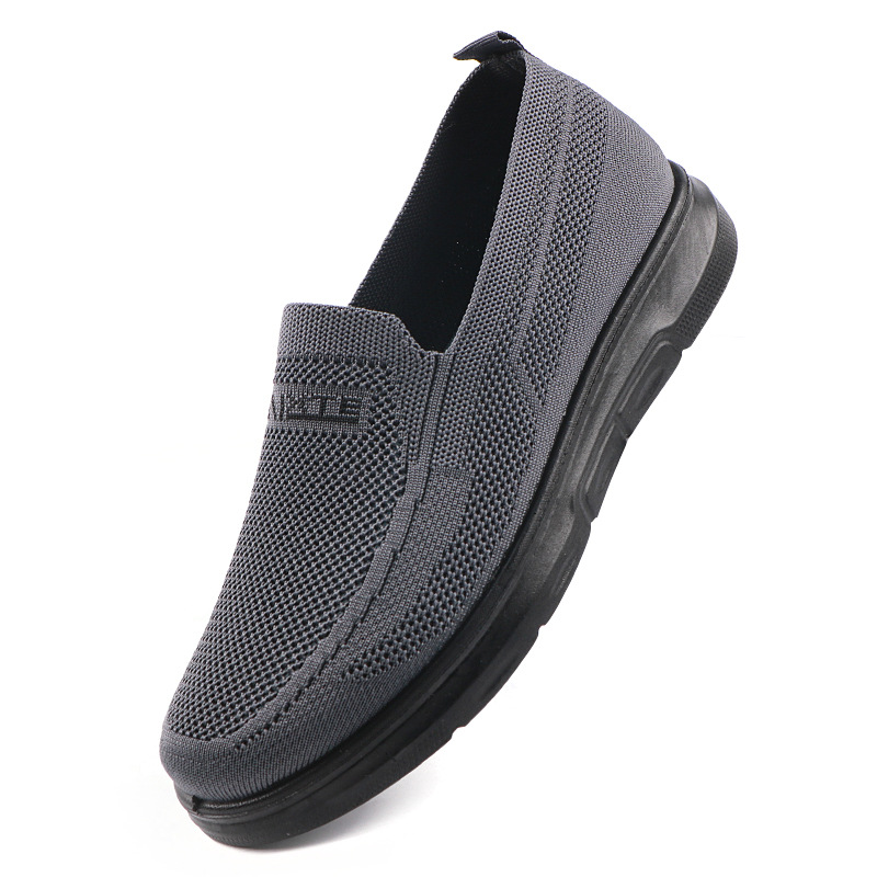単層フライニット2025春夏新作老北京布靴メンズシューズ中高年男性用快適カジュアルシューズ通気性