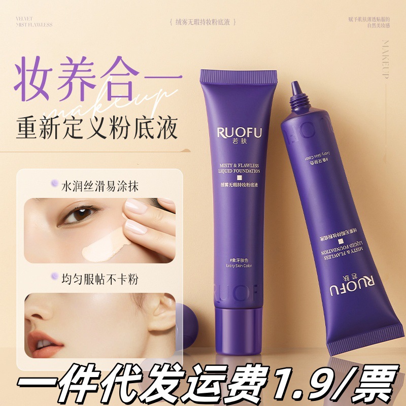 Rofu ベルベット ミスト 完璧なメイクアップ リキッド ファンデーション、ベタつかず、保湿、コンシーラー、自然で通気性のある化粧下地