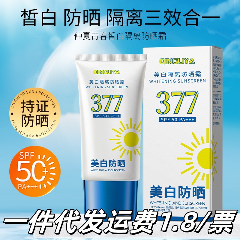 人気の Qilingya 377 美白日焼け止めクリーム、UV 防止 SPF50+ 軽くて通気性のある日焼け止めクリーム