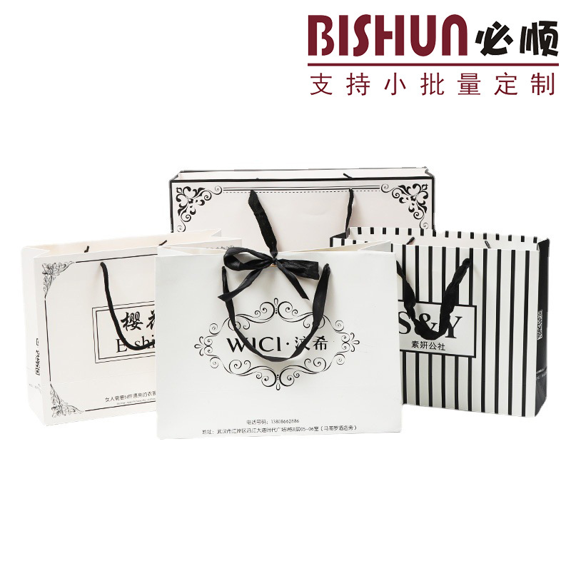 祝日の礼袋婦人服店のレジ袋は紙袋を厚くして小さい中サイズの手提げ袋を印刷して卸売りします。