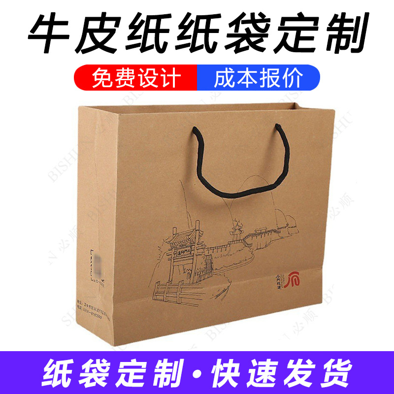 輸入クラフト紙袋卸売りuv広告ギフト紙袋レトロクラフト紙包装紙袋印刷