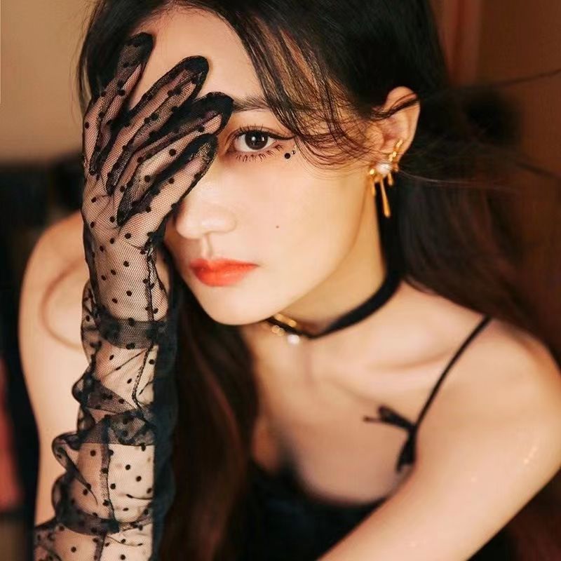 春夏の薄い糸の手袋のモデルはセクシーなドレスの長いタイプを撮影します。