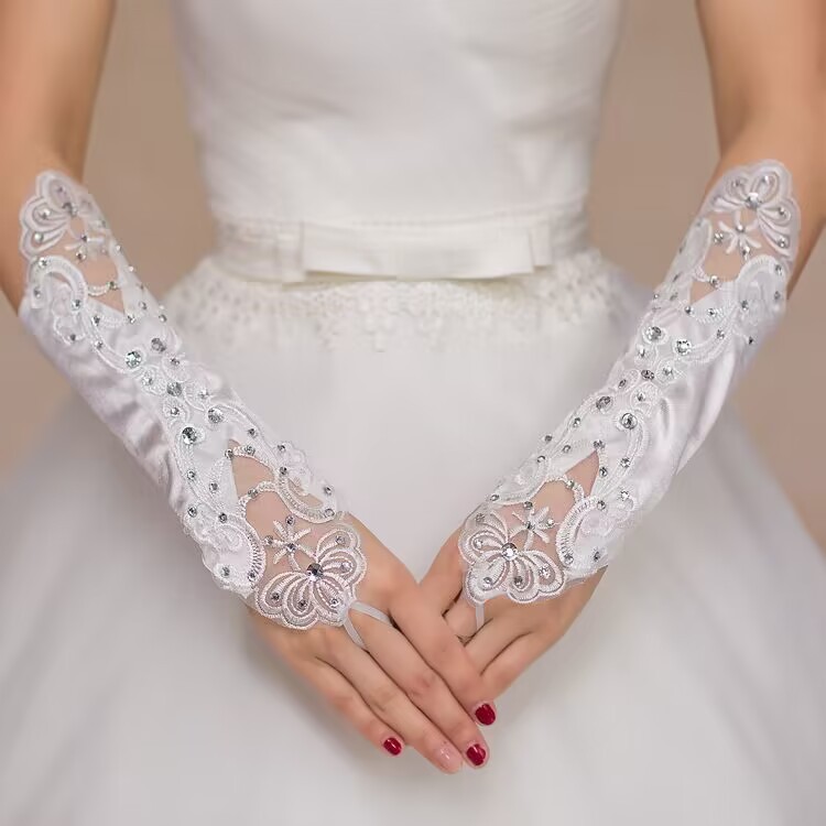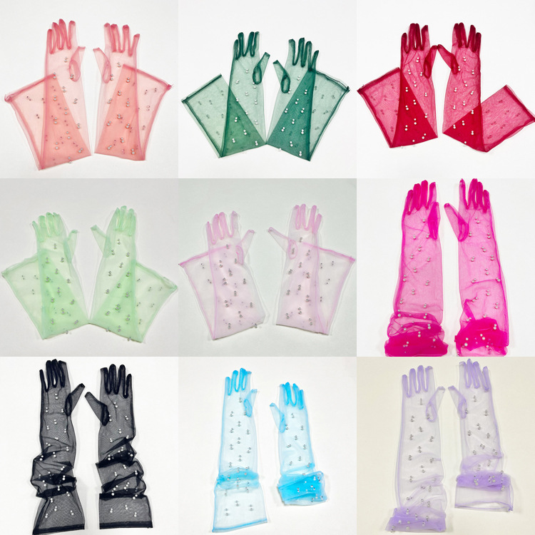 花嫁のウェディングドレスイブニングドレス白黒レース手袋レディースエチケットパールレースメーカー卸売
