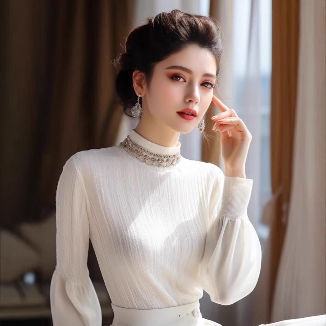 今年人気の美しいデザインニッチインナー秋冬白レースボトムシャツフレンチトップ