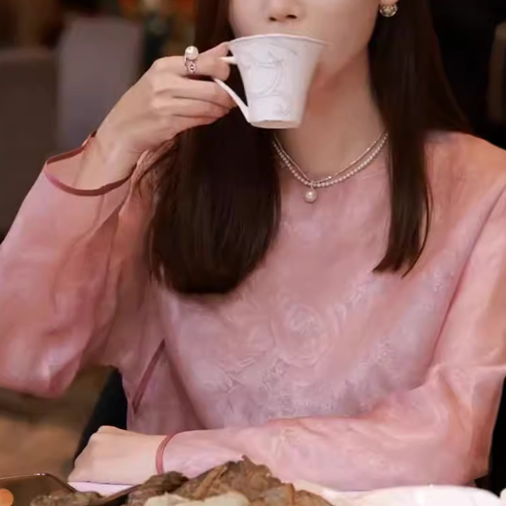 今年の人気の新しい中国風のピンクのプリントシャツ女性用 2024 早春の新しいスタイルのシックで美しい中国風の唐スーツトップ