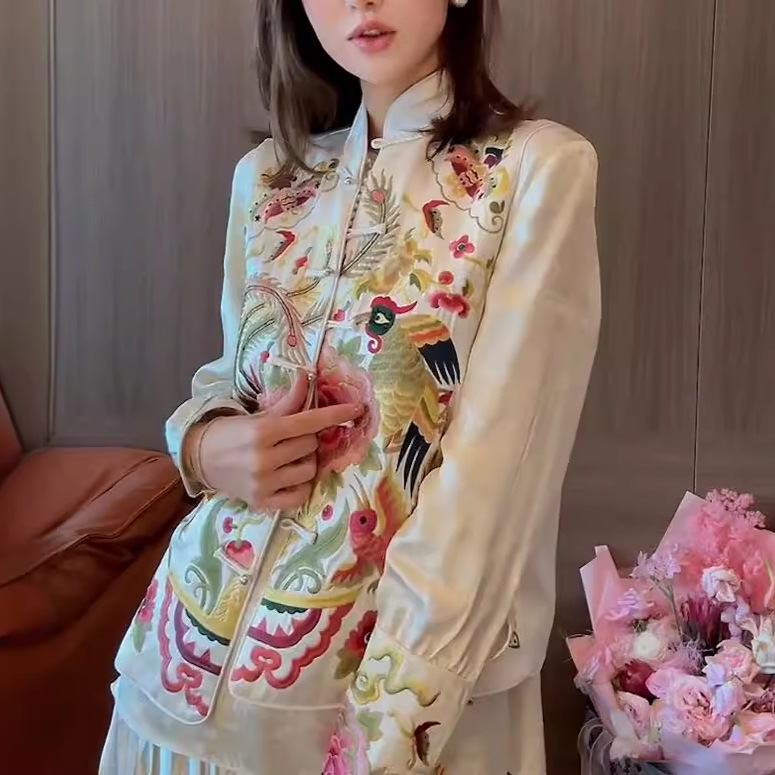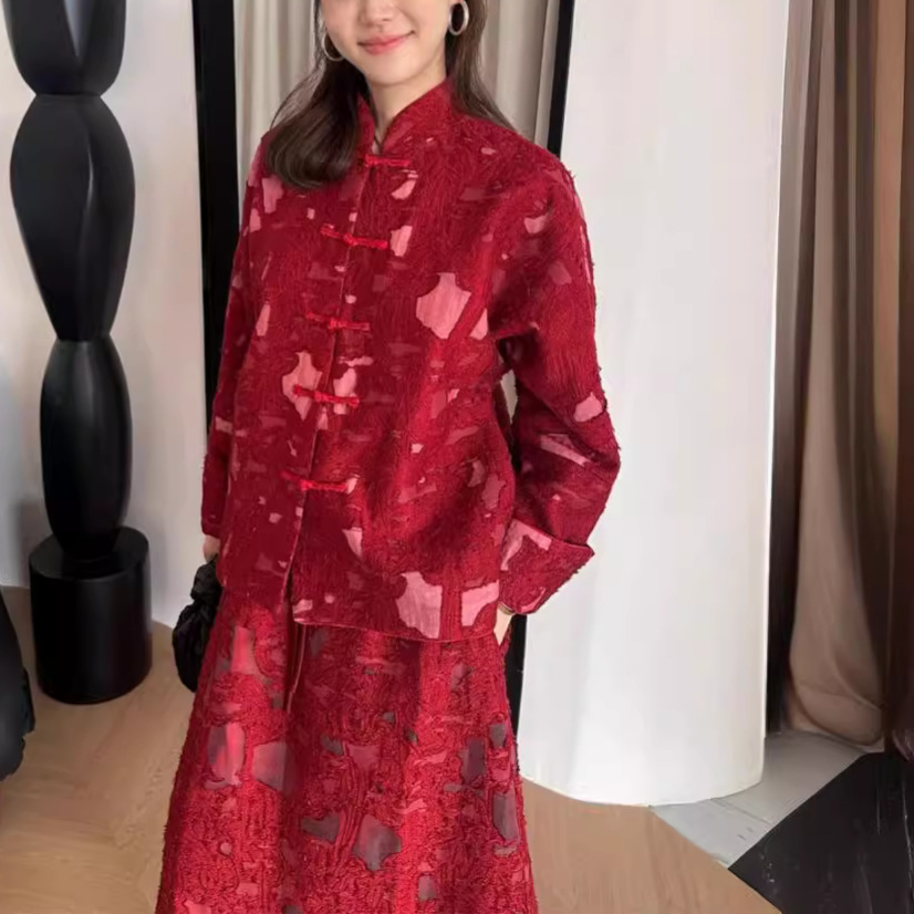 新中国式女装軽中国風赤いワンピース婚約ドレス上着スカートスーツ2024早春着