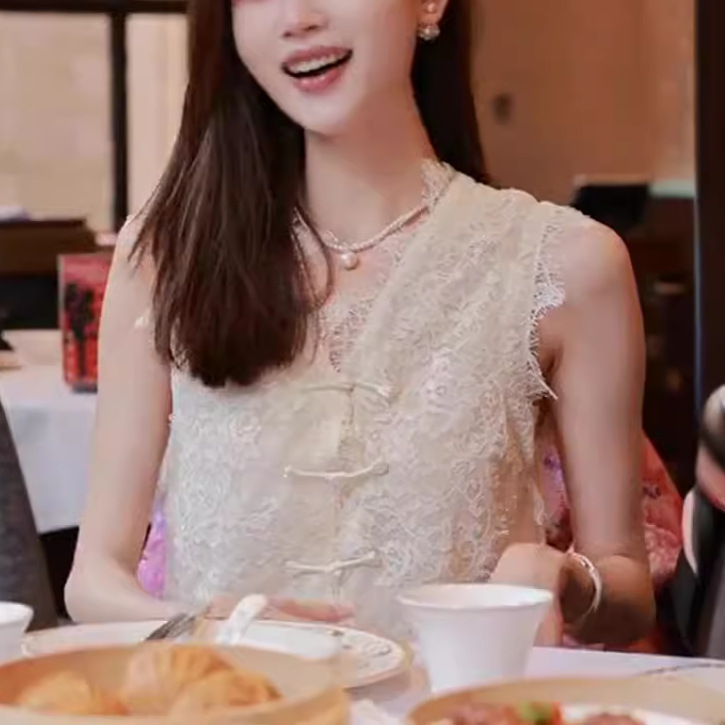 新中国風の白いレースのベストの中に上着をつけます。今年は独特の綺麗なシャツが流行します。