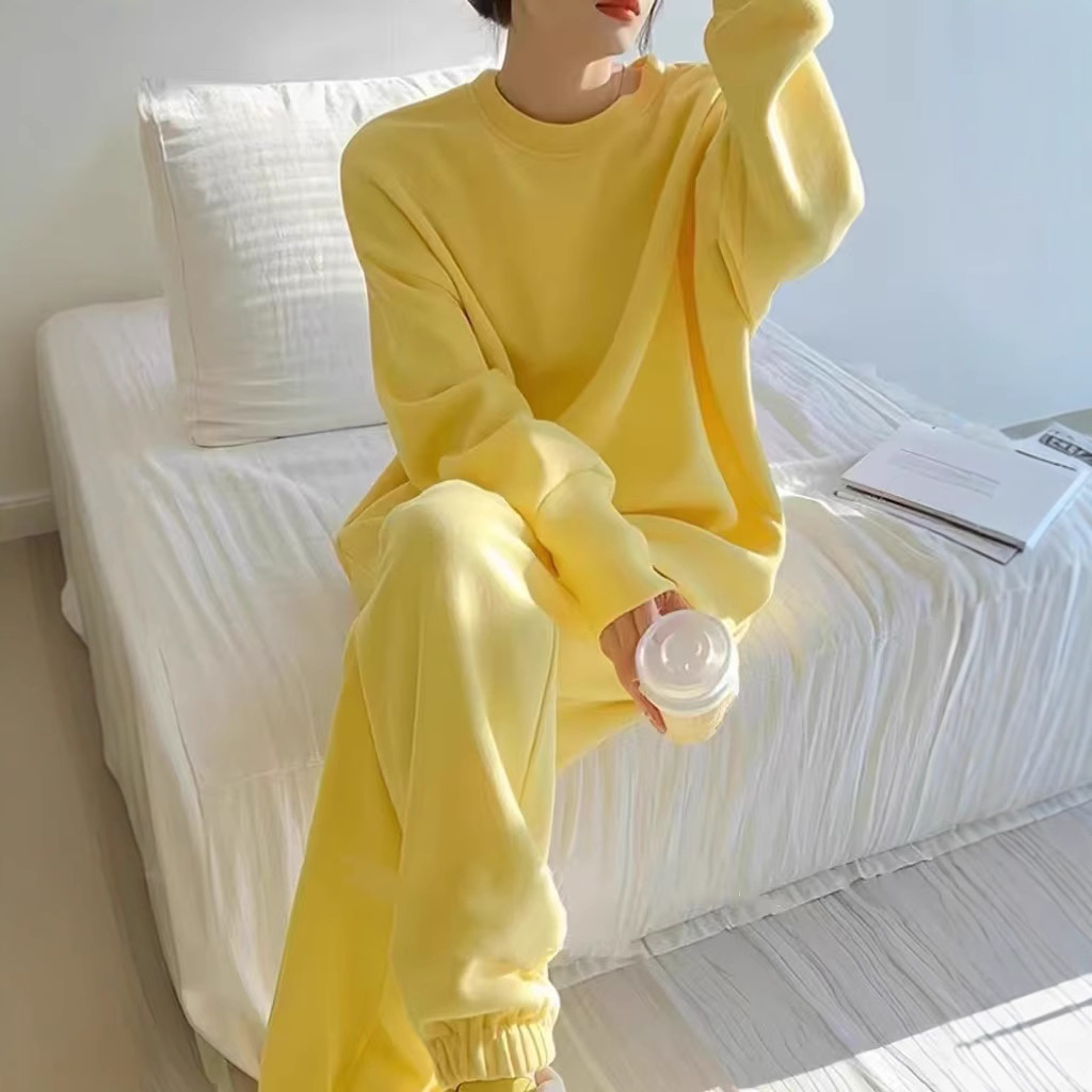 今年流行したきれいな春の女装はまたa又颯2025韓系がやせてカジュアルな黄色のガードルのスーツのズボンを見せます。