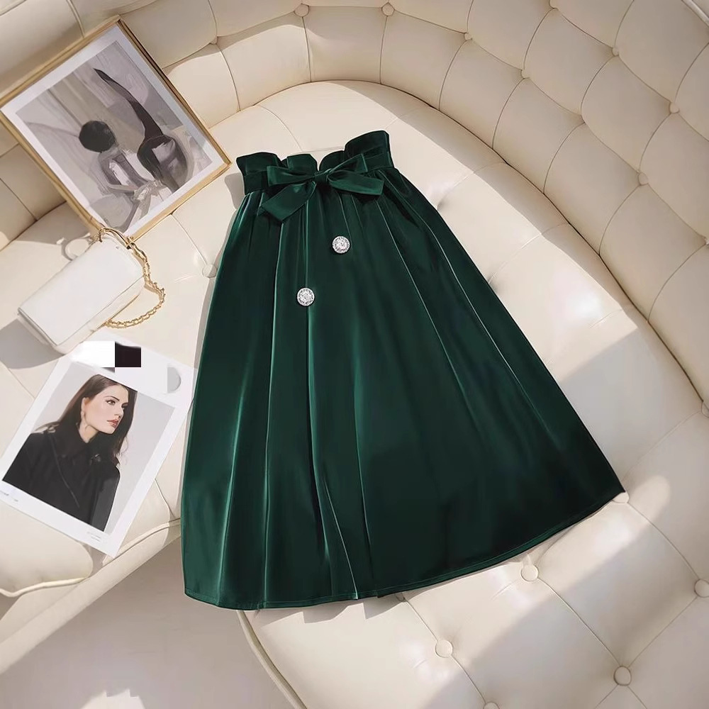 墨緑ベロアスカートa字女性春今年流行起爆スカートフランス式ドーパミン絶美スカート