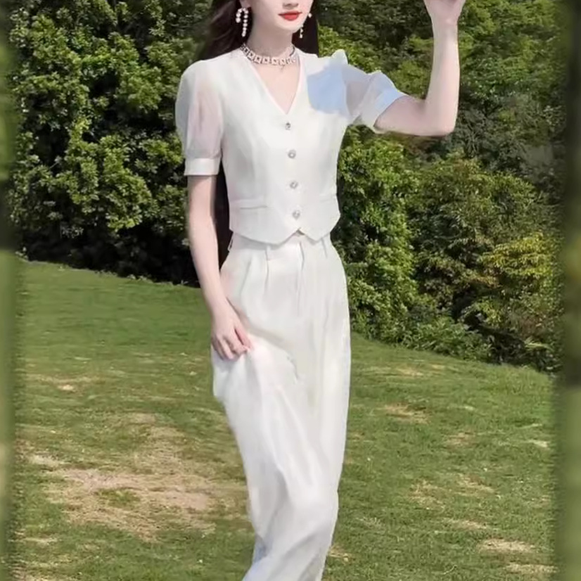 夏の服とファッションの年齢を減らす高級感のある小さい洋服の洗練された気質の娘風の上着のズボンのスーツ