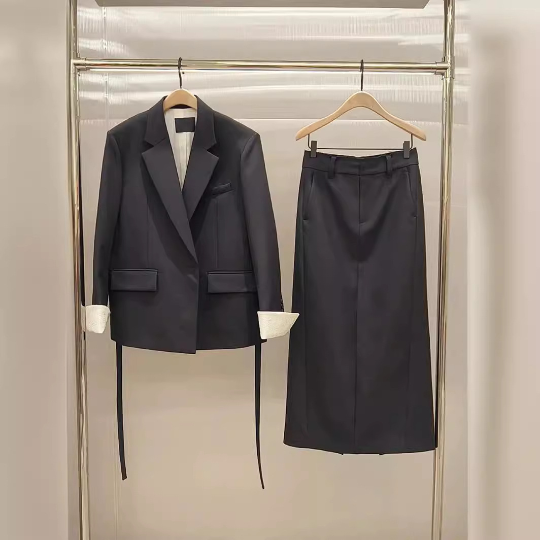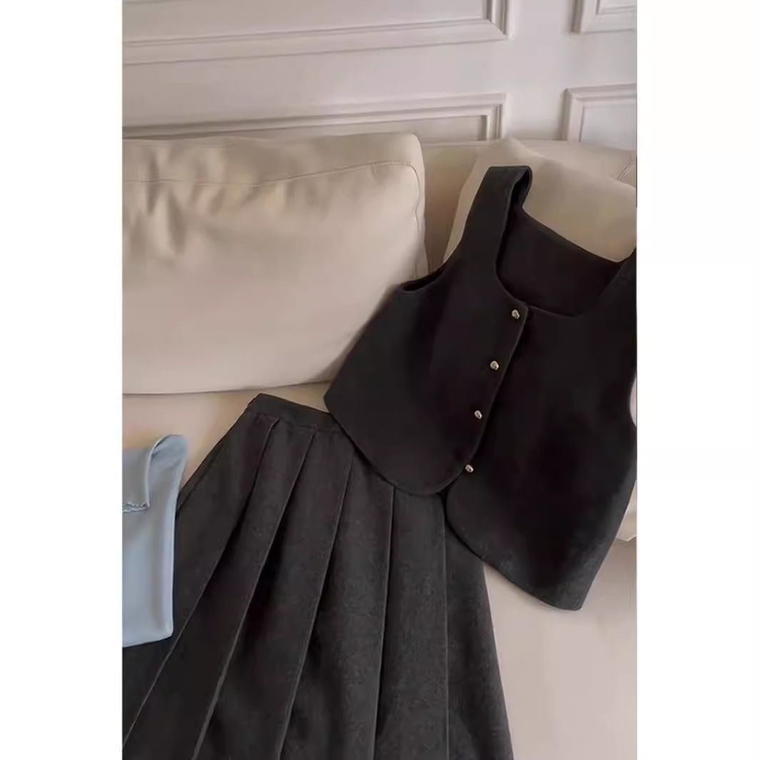 赫本風千金風スーツ気質フランスレトロ馬甲女春2024新作ハイウエスト黒百パートナースカート