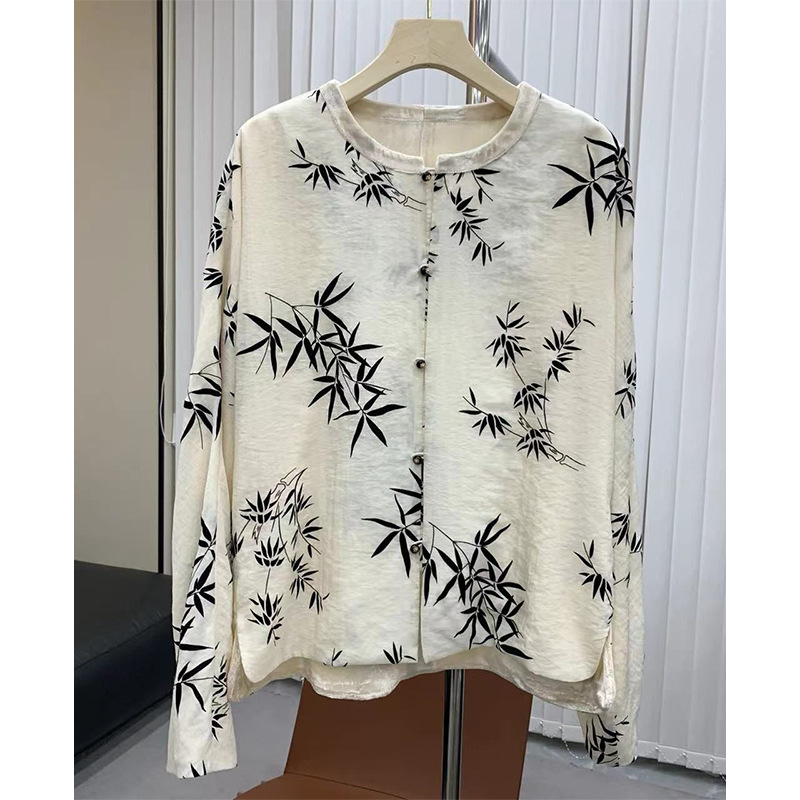 新中国風国風茶里茶気のユニークな上着竹プリントシャツのコート女性は早春に2024新製品を着た