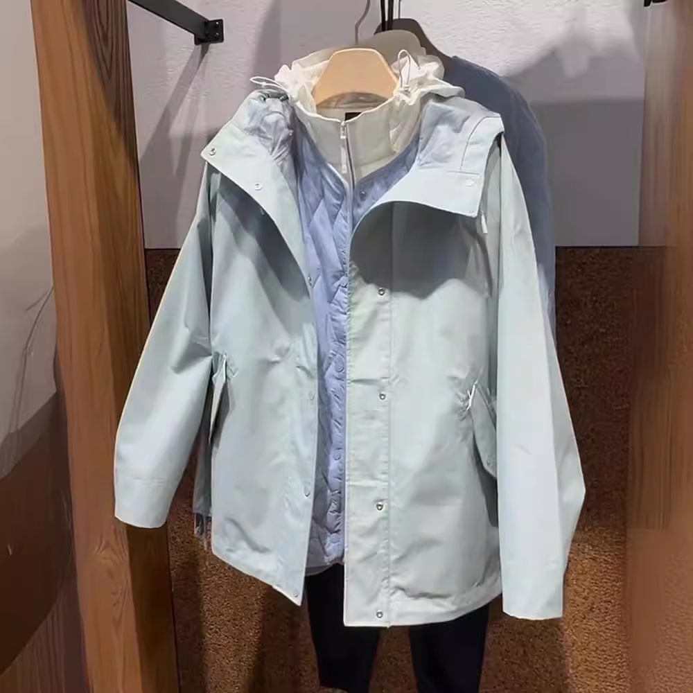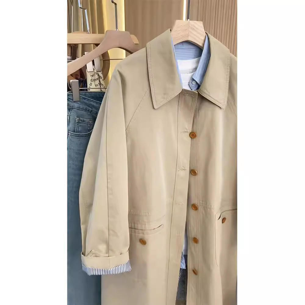 高級で超見栄えの良い韓国風小中丈カーキウインドブレーカージャケット女性用2025新作早春スタイル