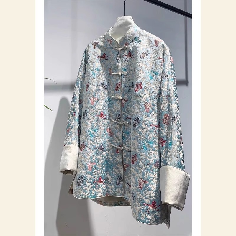 今年の人気の美しくハイエンドの古いお金スタイルの新しい中国風国民風ブループリント宋錦ジャケット女性用 2024 初春