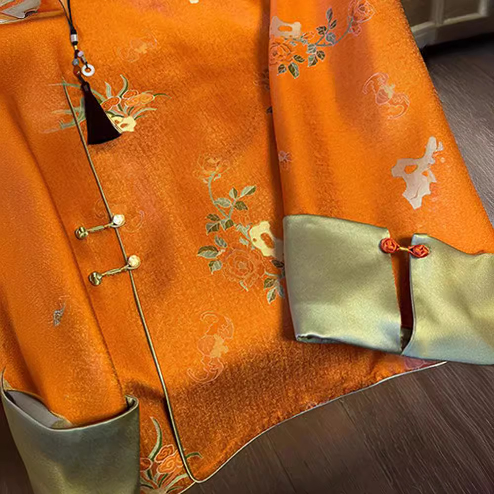 2024春の新型独特な大衆デザイン高級感老銭風新中国風オレンジ色コート女性