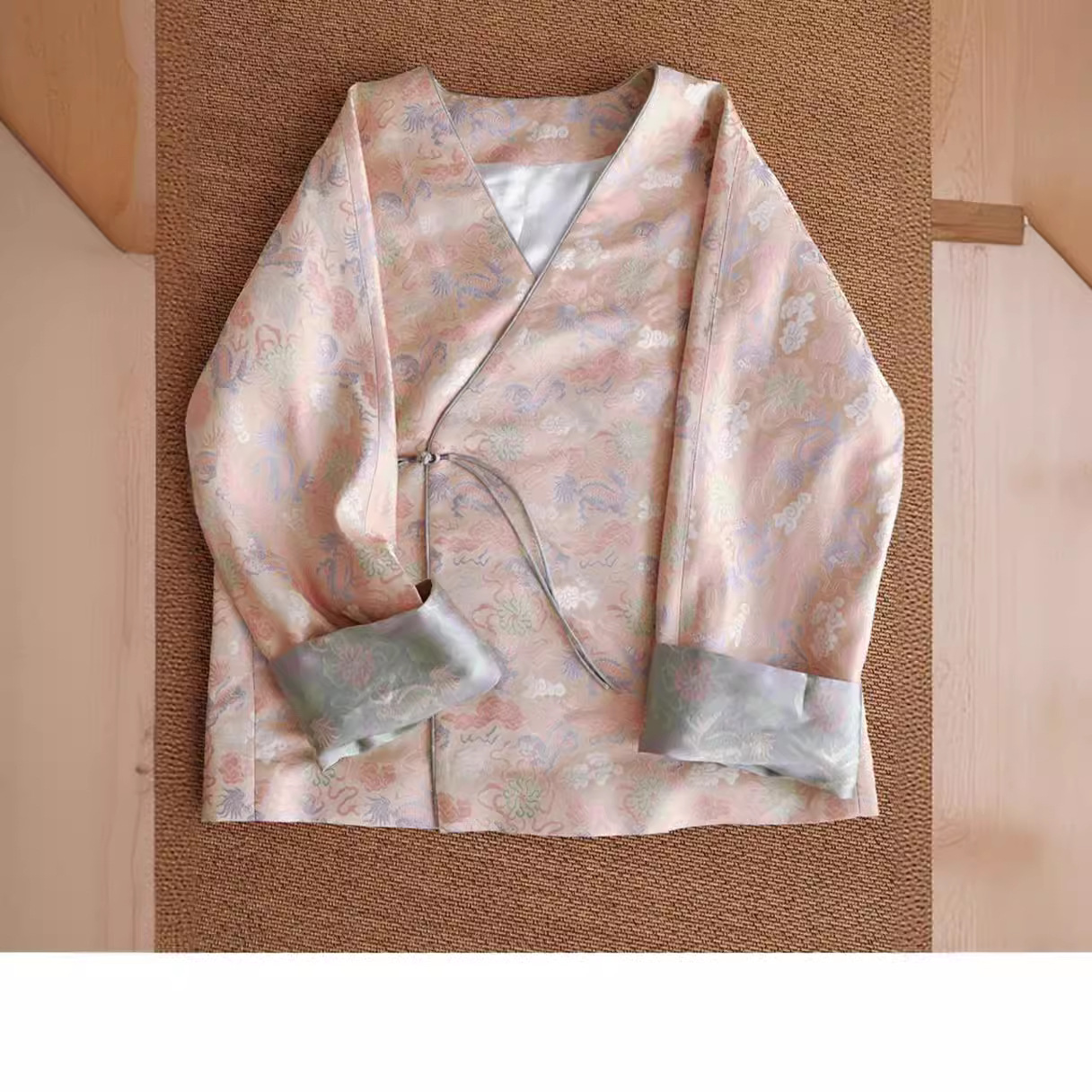 新中国式国風ピンクジャカードジャケット2024春の新型高級で洗練された盤ボタン唐装上着