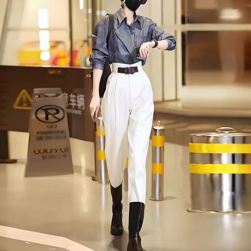 2024新作女性早春シャツ気質ストライプシャツ洋気独特のシックで高級感があります。