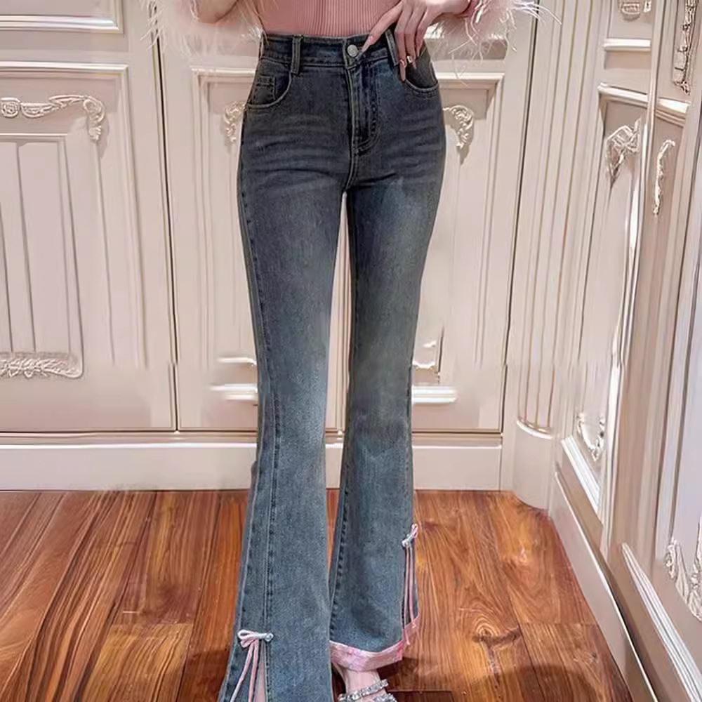 2024早春新中国風ブルージーンズの女性は背が高くて腰がやせています。