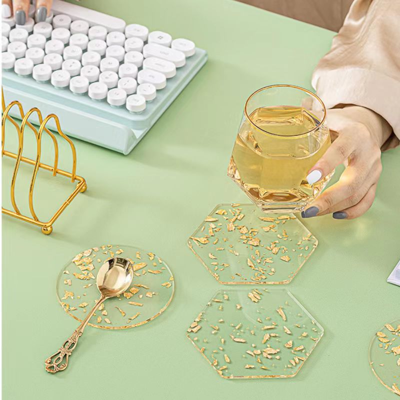 アクリルカップカップカップ金箔ins同型クリエイティブ小紅書樹脂テーブルマット防水断熱マット風北欧