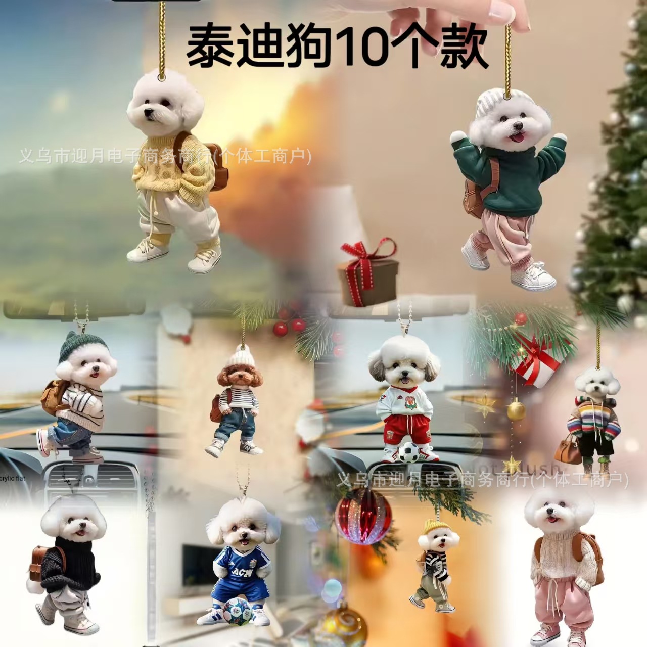 クロスボーダー新型アクリル平面クリスマス犬自動車装飾ペンダント