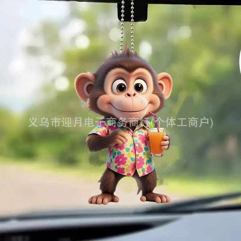 国境を越えた新型の2dアクリルかわいいサル車ストラップミラー装飾ペンダントクリスマスツリー装飾品