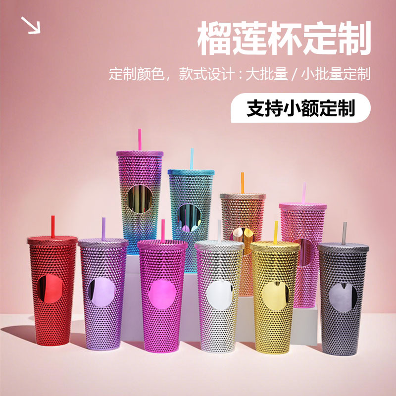 新しい工場直送の大容量ドリアンカップ、クリエイティブな二層プラスチックウォーターカップ、インターネットセレブの高価値ストローカップ