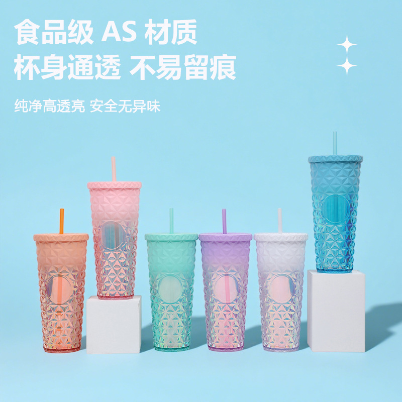 メーカー直供二重プラスチックストローカップ大容量710mlメッキグラデーションザクロ蓮カップ