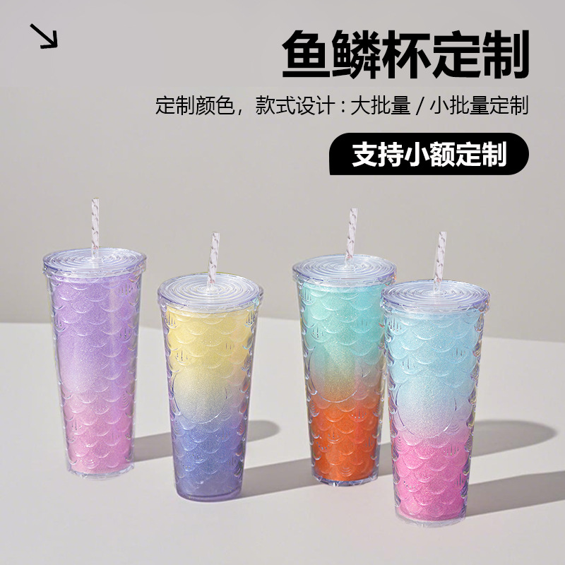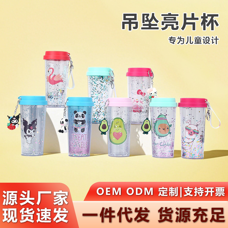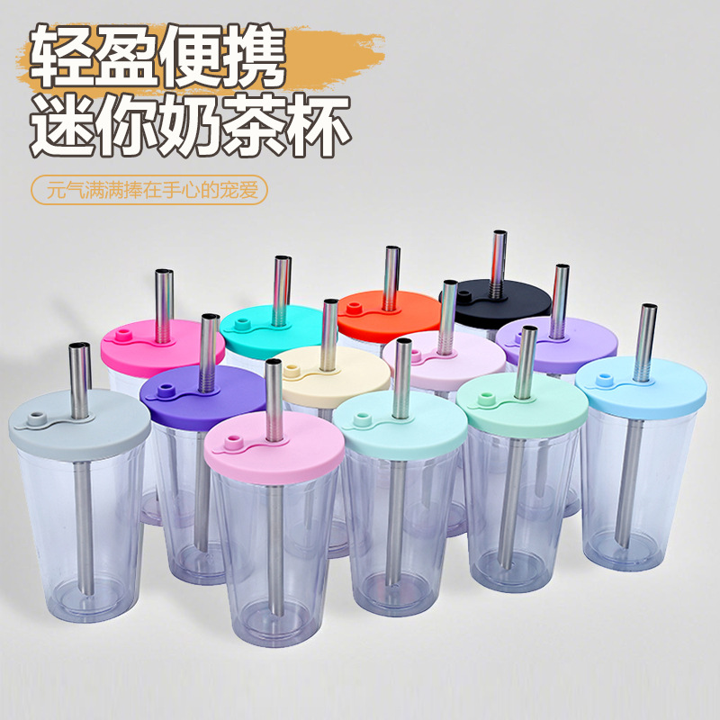 蓋付き透明二層プラスチックカップの国境を越えた直接供給、女の子用のロゴ入りストローカップ、ウォーターカップ、シンプルな小容量