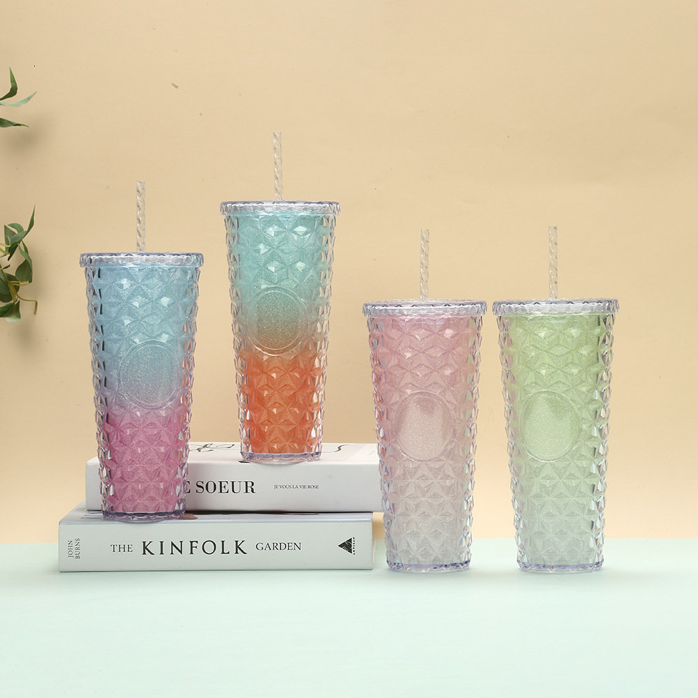越境メーカー直送 ドリアンカップ ケイティ 二層プラスチック菱形カップ 大容量 ネット人気 クリエイティブストローカップ ウォーターカップ