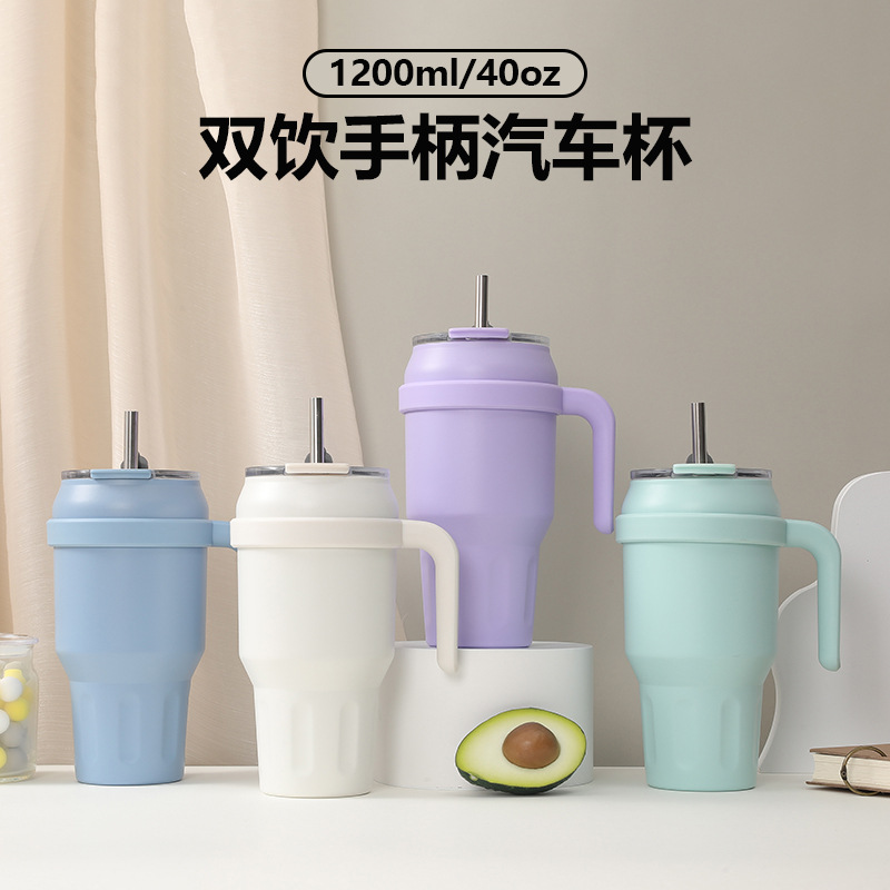 クロスボーダー新型純色40oz304ステンレス保温カップ取っ手付き携帯高颜値ビッグマックストローカップ