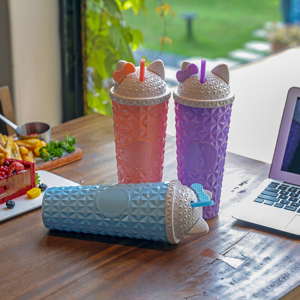 厂家直供时尚新款双层塑料杯AS水晶杯 女生高颜值渐变网红钻石杯