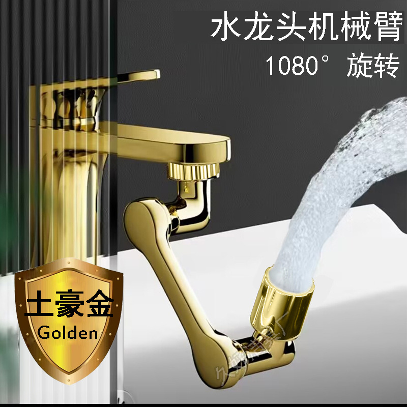 金色の蛇口機械アーム万能延長器、2段階の防滴水ノズル、回転式エアレーター、シルバーも選択可能