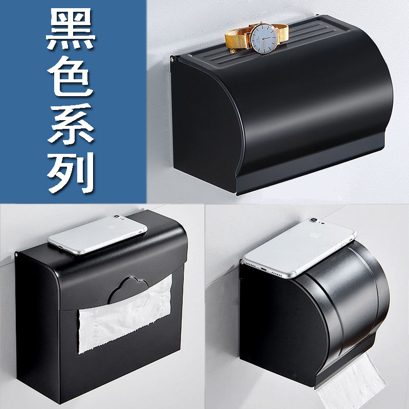宇宙アルミニウム製トイレットペーパーボックス、防水防錆、黒色、穴あけ不要、ペーパータオルホルダー、草紙ボックス