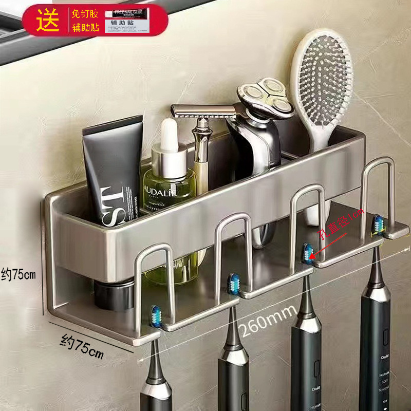 スペースアルミ歯ブラシカップホルダーうがいカップ吸い壁式穴あけなし歯磨き粉収納トイレラック卸売り
