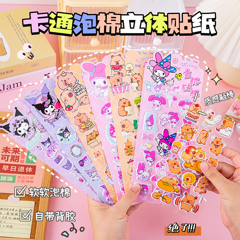 カピバラ立体シール創意漫画芙蓉皮泡綿手帳貼り庫洛米DIY素材装飾貼り