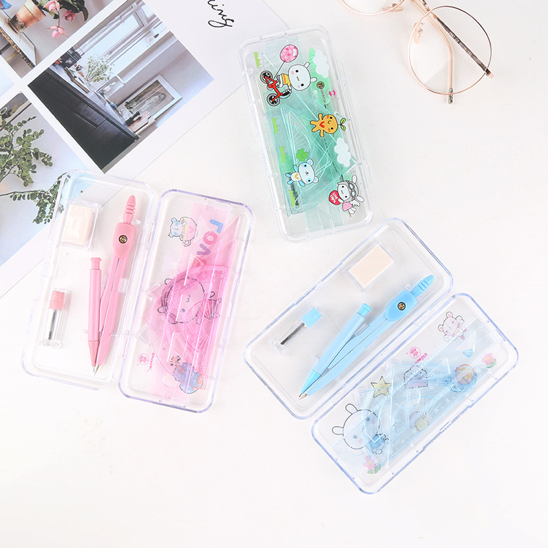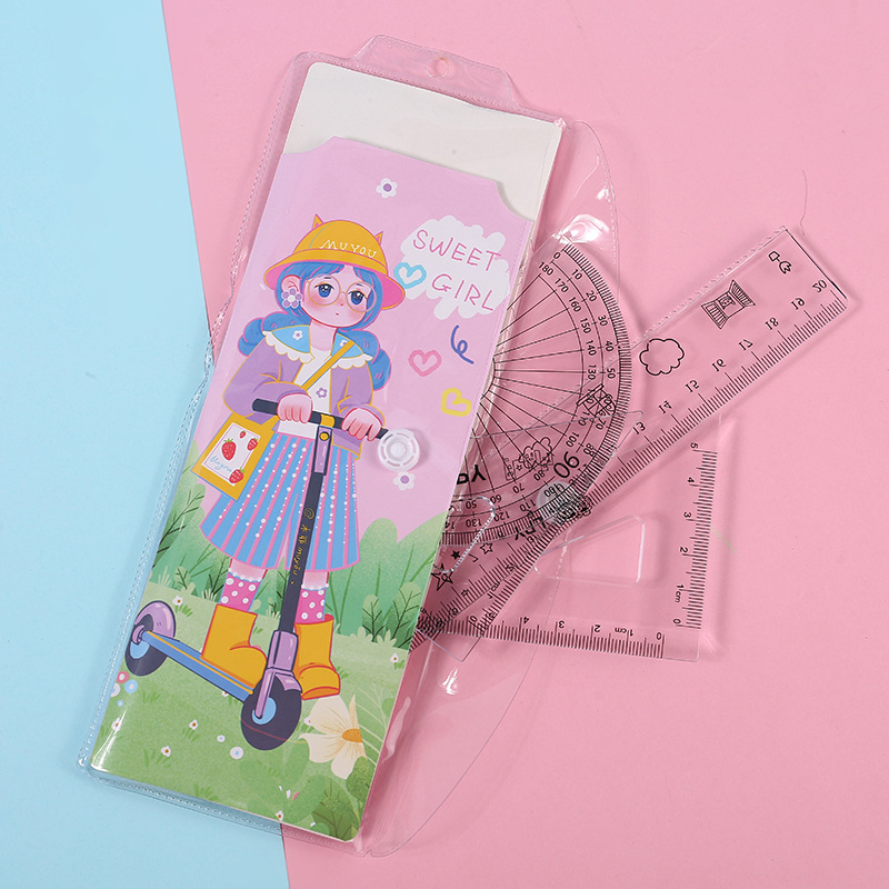 アニメ定規セット学生文房具セット定規透明定規直尺20cm三角定規4点セット卸売り定規
