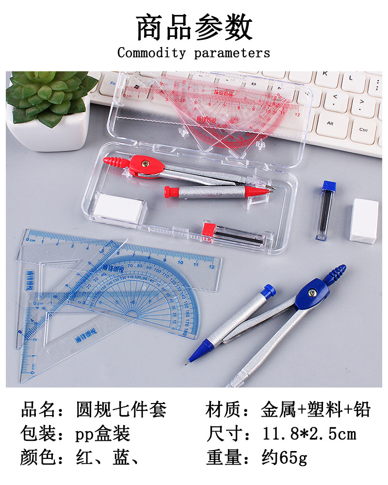 学生定規セットコンパス定規7点セット幾何学製図ツールボックス漫画卸売コンパスその他