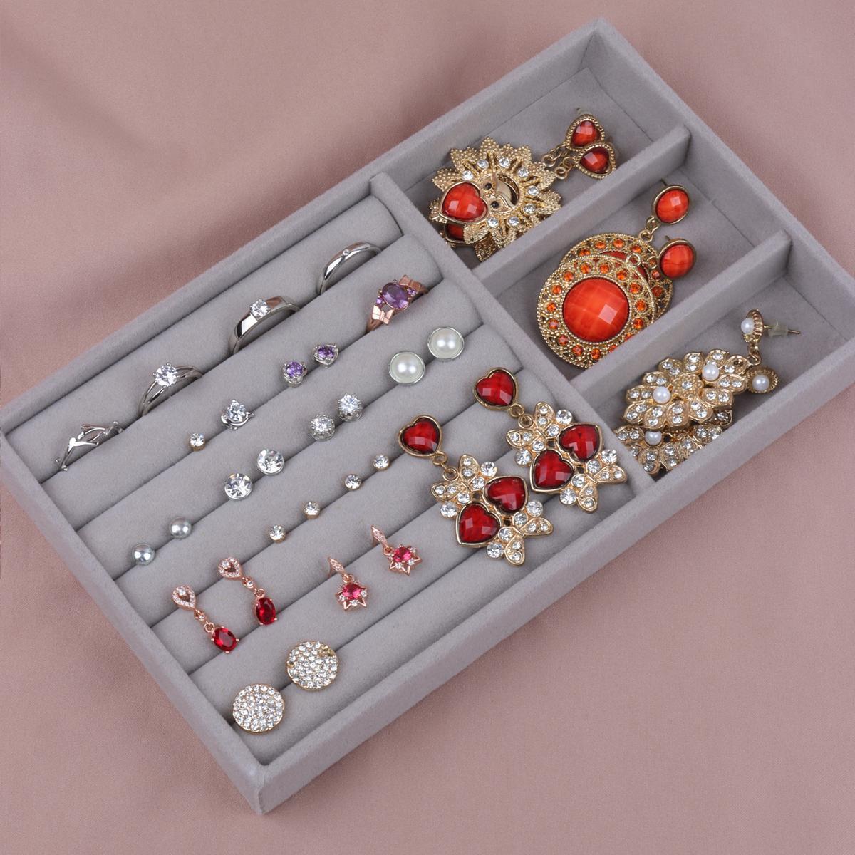人気モデルのベルベット展示トレイ高級グレーリング耳飾りセット格子盤ジュエリー収納ケース