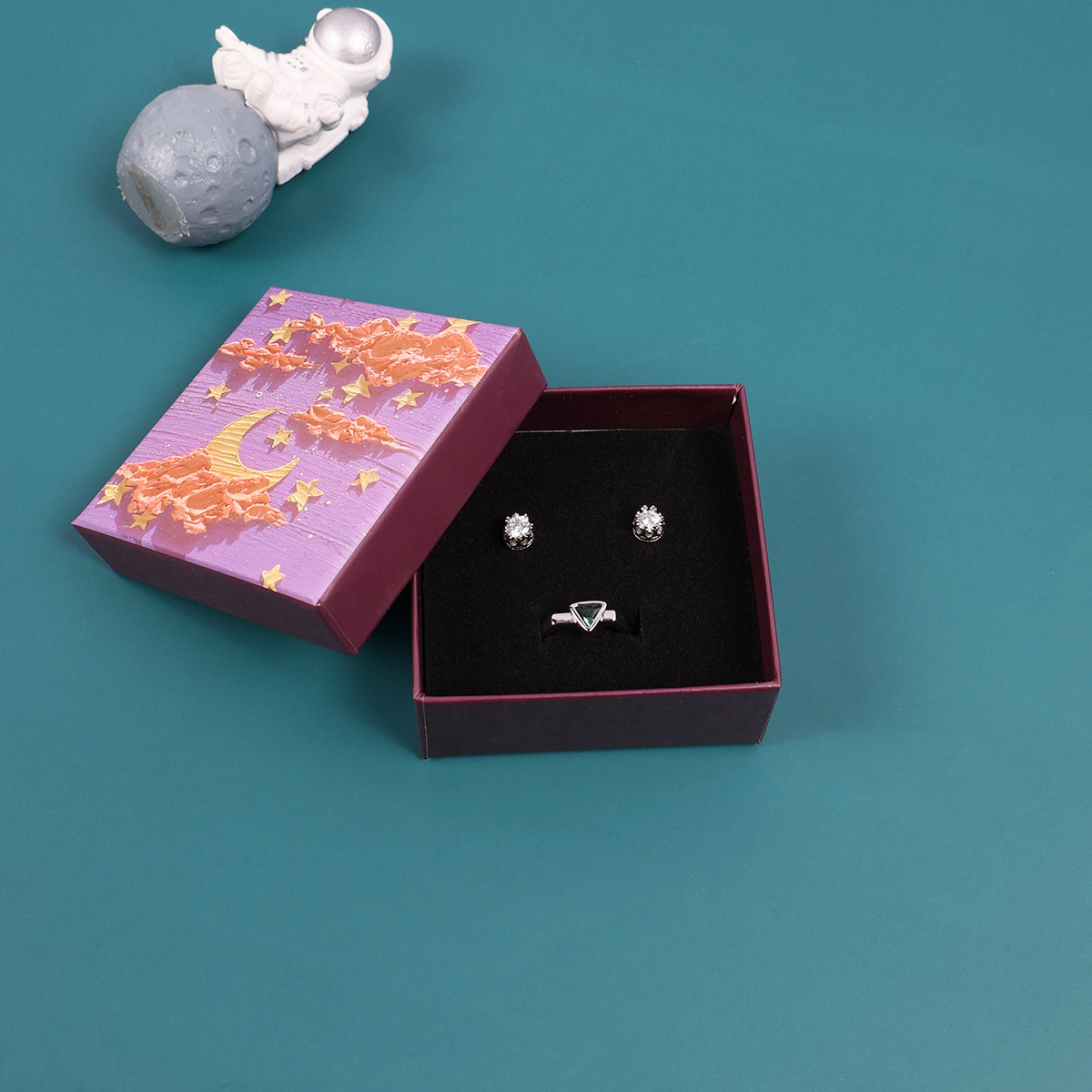 国潮創意アクセサリーケース絵図色絵紫天地蓋方形ネックレスケースピアスネックレス収納ケース
