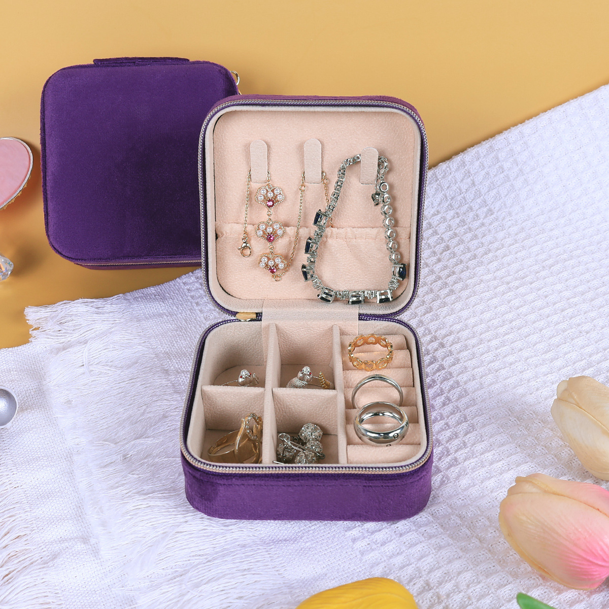 ジュエリー収納ボックス、高級スエードジッパーバッグ、イヤリング、リング、ネックレス、旅行用ポータブルジュエリー収納バッグ
