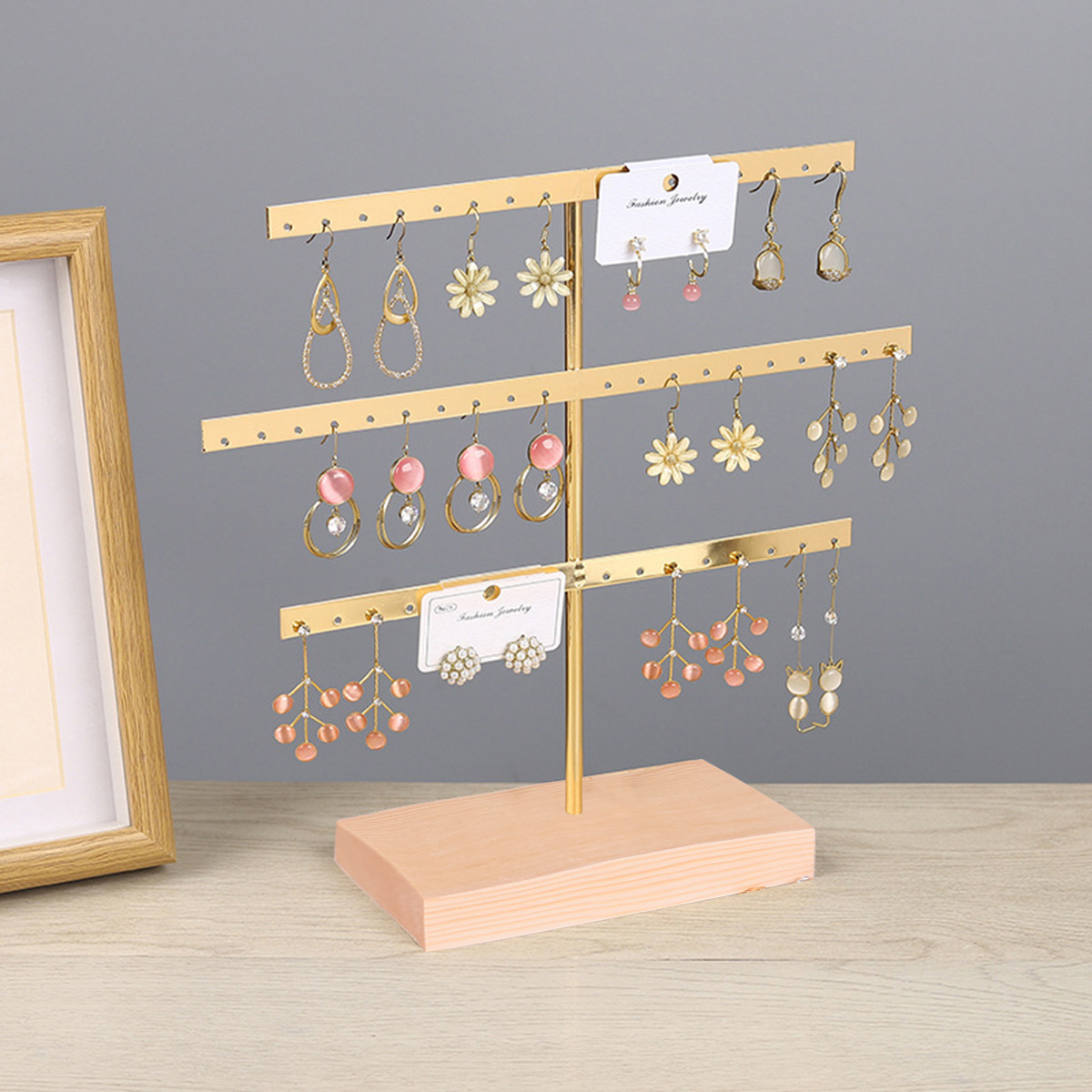 実木鉄芸イヤリング展示棚金色縦型三階52穴金色耳飾り収納棚イヤリング展示棚