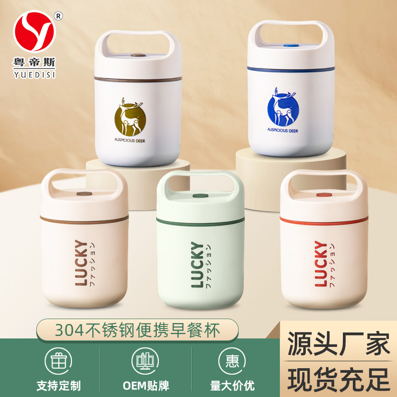 メーカー直供サラリーマン携帯牛乳カップ304ステンレスエンバクカップ蓋付き密封朝食カップ代発