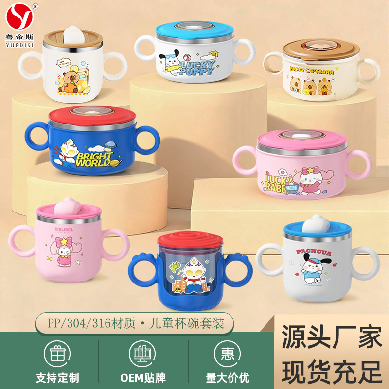 メーカーは乳児補助ボウル316ステンレス赤ちゃんの熱くない食事ボウル学生漫画子供ボウル代発を提供している