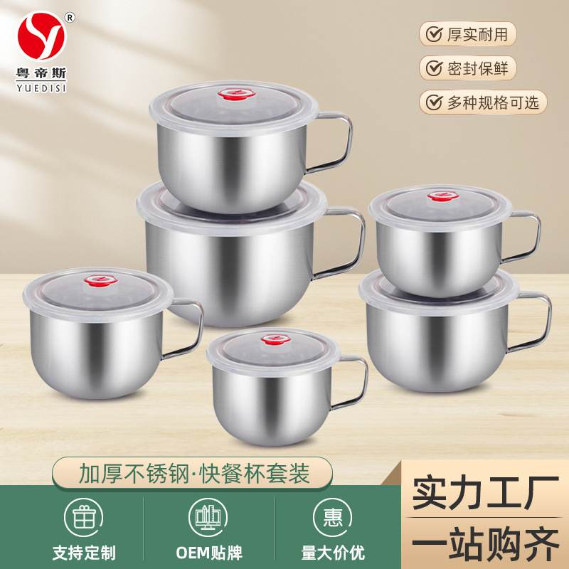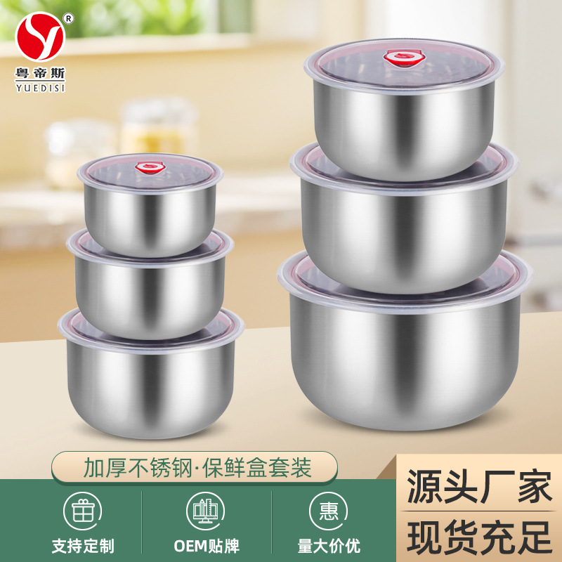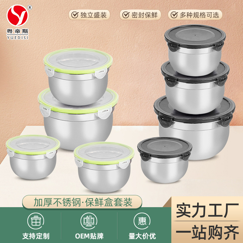 メーカー直供ステンレス蓋付きスープ碗厨房冷蔵庫収納ケースセット円形果物保存ケース卸売り