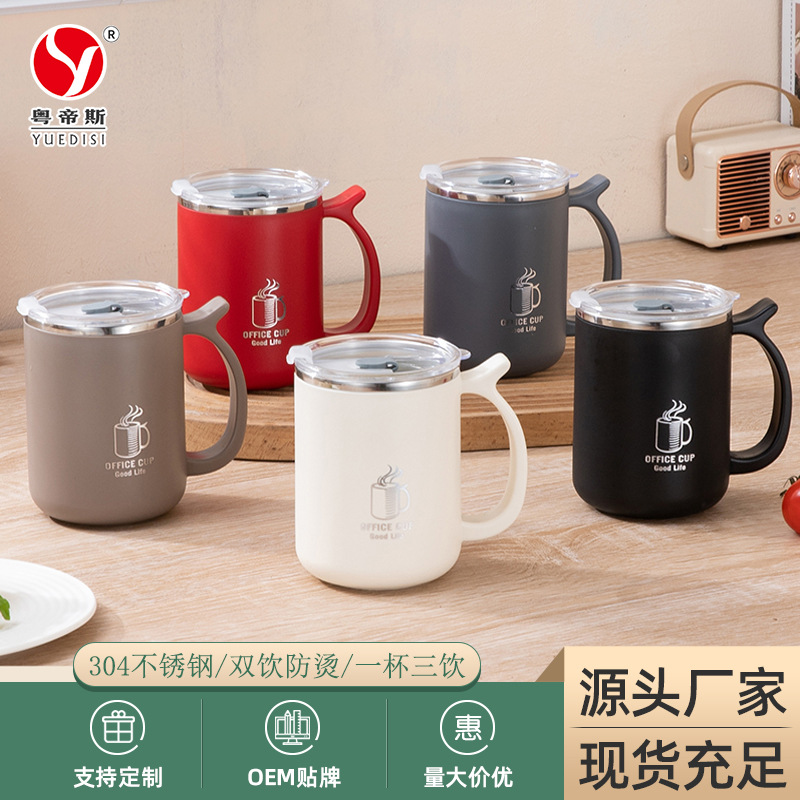 メーカー直接供給シンプルな 304 ステンレス鋼ハンディカップ家庭用マグ蓋付きオフィスポータブルウォーターカップ卸売